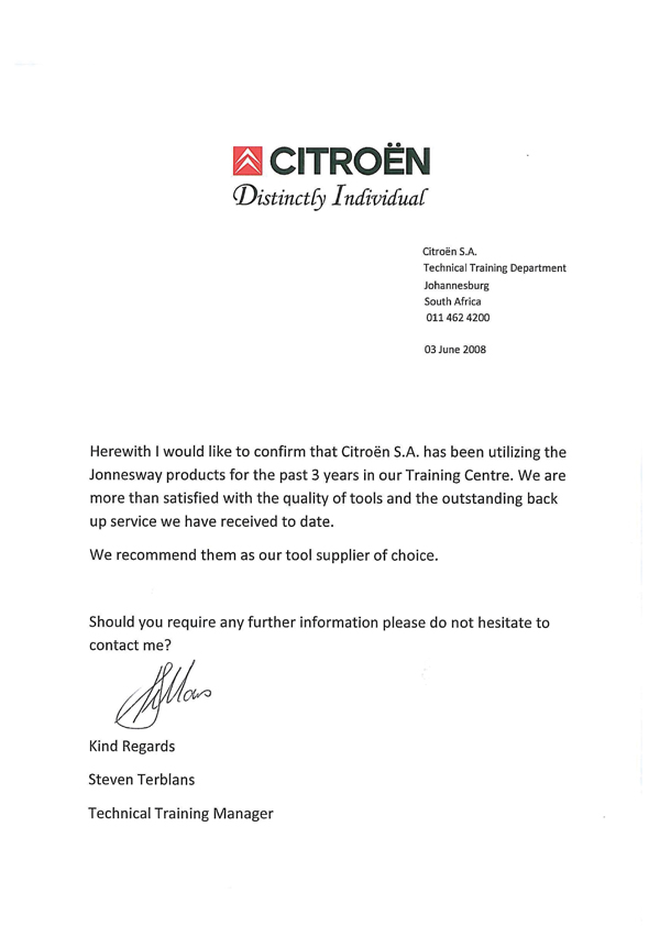 Концерн CITROЁN подтверждает использование инструмента JONNESWAY в течении 3-х лет. Выражает удовлетворение сотрудничеством. И рекомендует JONNESWAY как поставщика качественного инструмента.