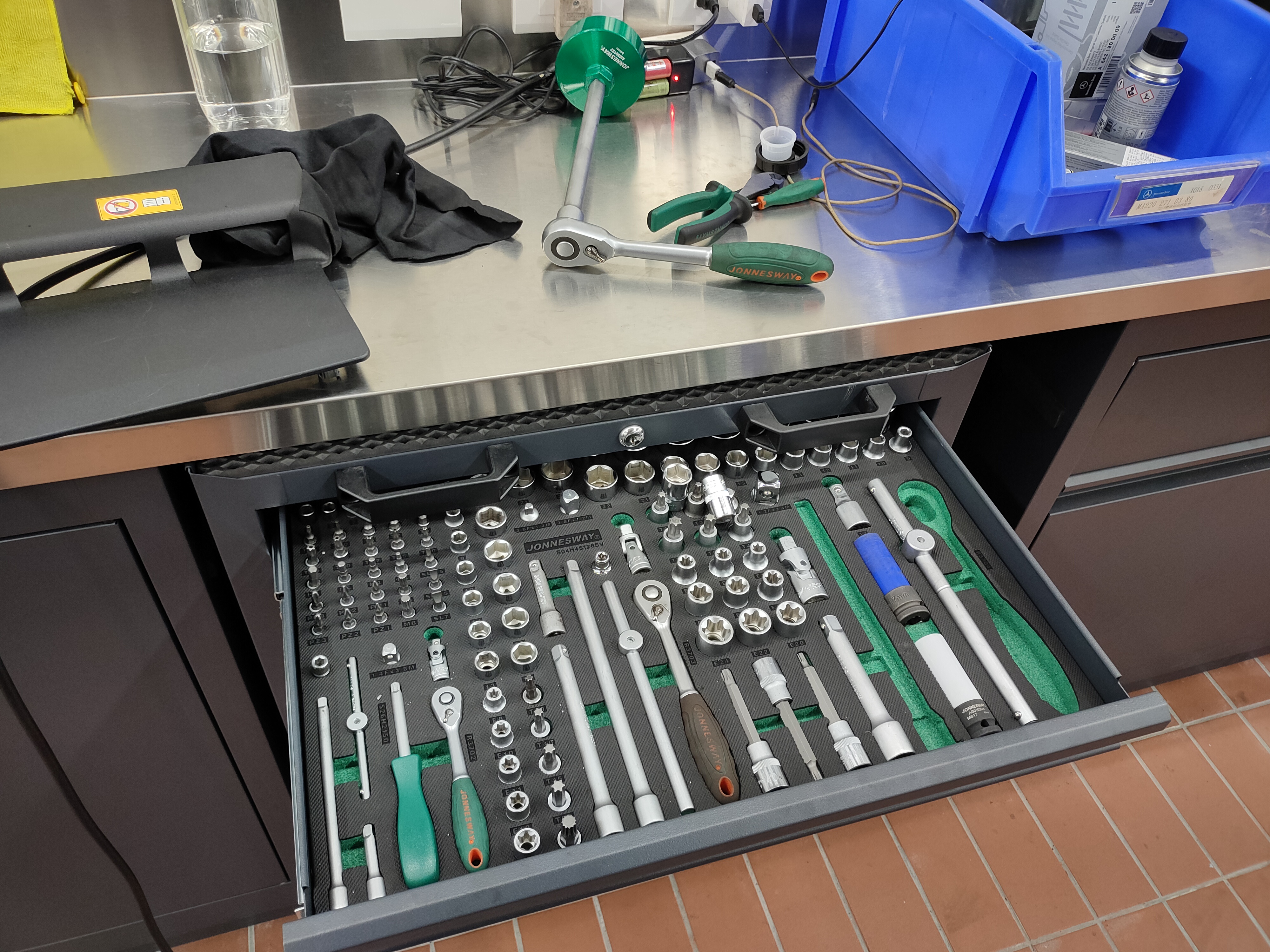 Для интеграции инструментов Jonnesway в соответствии с требованиями немецкого представительства Mercedes-Benz было проведено большое количество встреч и консультаций, по итогам которых были внесены изменения и в инструмент, и в состав комплектов инструментов. Для обеспечения максимальной производительности и эффективности все инструментальные телеги и наборы инструментов созданы в соответствии с требованиями и запросами механиков Mercedes-Benz. В результате была создана эксклюзивная рабочая станция для Mercedes-Benz.