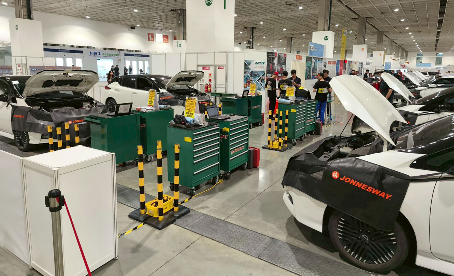 Правительство Тайваня придаёт большое значение развитию профессиональных навыков: президент лично вручает награды победителям соревнований. Министр труда присутствовал на мероприятии, поддерживая как участников, так и компании-спонсоры. В последний день наш стенд посетили заместитель генерального директора, директор и руководитель отдела Агентства по развитию рабочих ресурсов Министерства труда, чтобы ознакомиться с инструментами JONNESWAY. Они были глубоко впечатлены и высоко оценили наши материалы по безопасности электромобилей и представленный ассортимент.