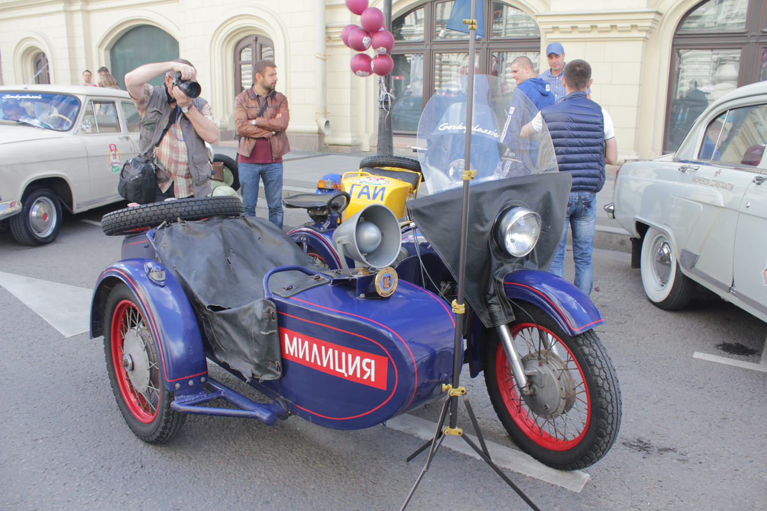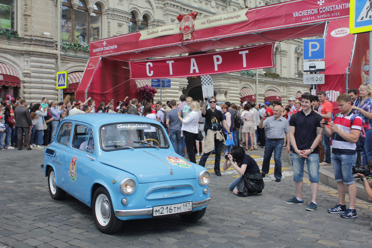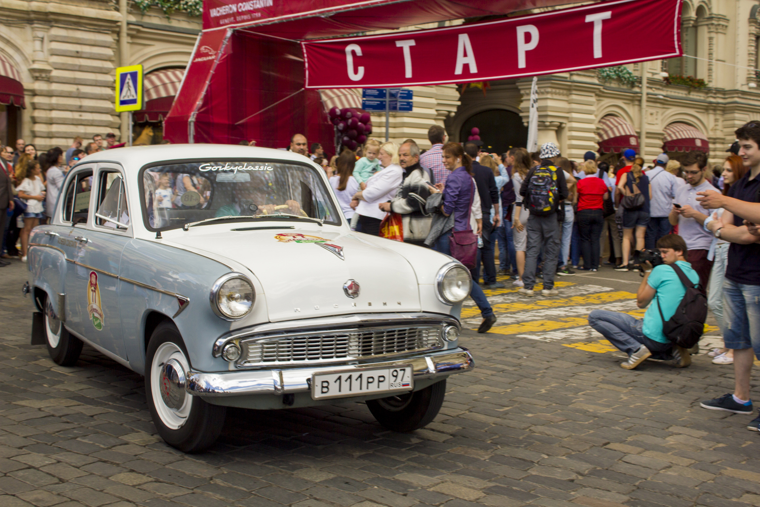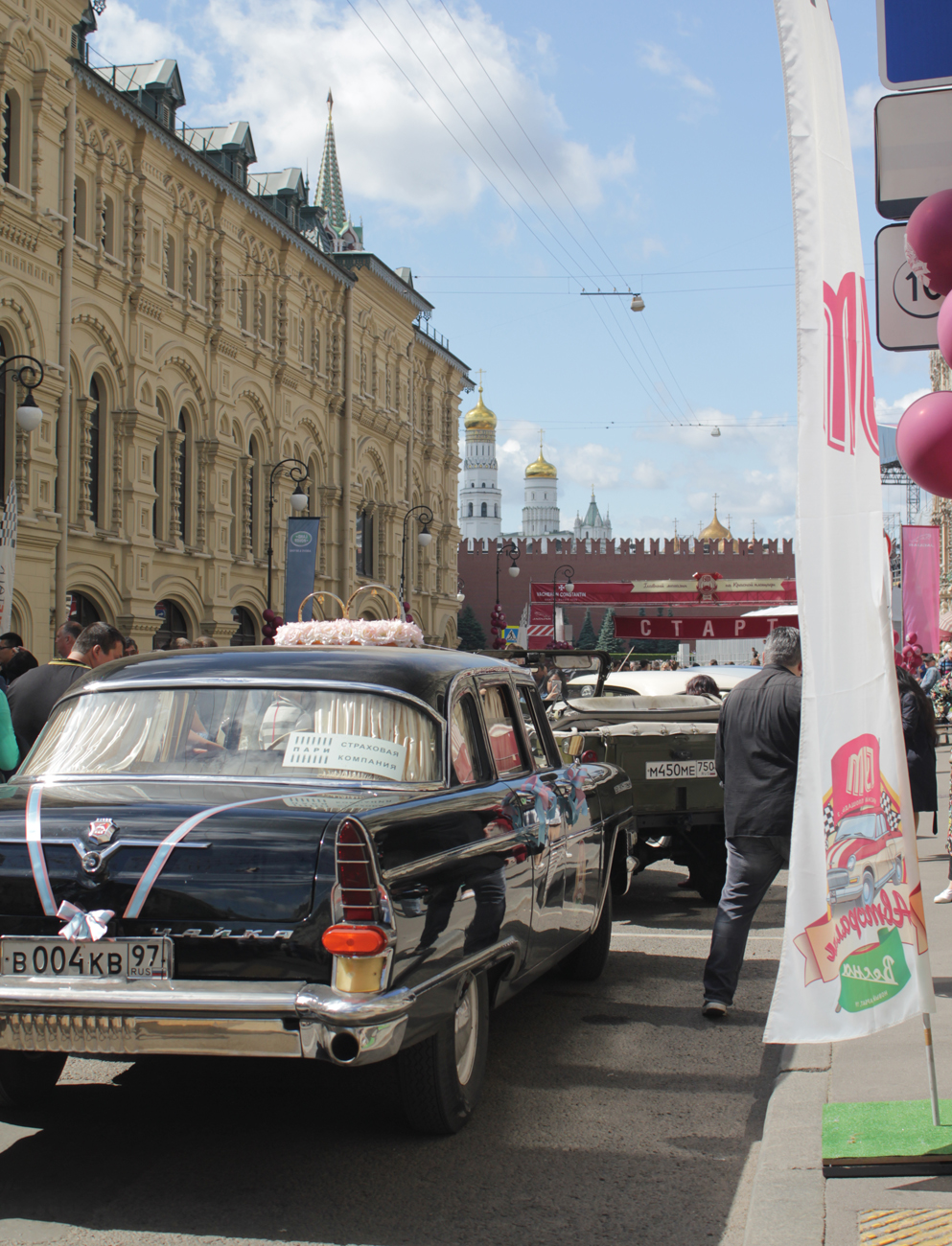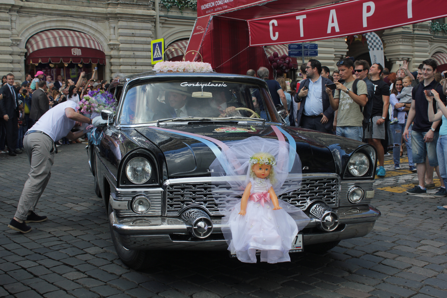 В воскресное утро, 23 июля, близ Красной площади можно было наблюдать колоритное зрелище: Ильинку и Ветошный переулок заполнили красивые, ухоженные автомобили и мотоциклы советского производства 1930-1970 года выпуска. Так уже 4-й год начинается ралли ГУМ. В этом году в мероприятии приняли участие 114 экипажей. И участники, и зрители как будто перенеслись на несколько десятилетий назад. Тут были и милицейская «канарейка», и бравые советские гаишники на «Волге» ГАЗ-24 (в последствии именно они победили в номинации «самый стильный экипаж»), и «Чайка» со свадебными кольцами на крыше, водителем которой выступил Михаил Куснирович.