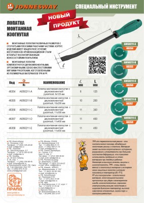 | AI050211-В | Лопатка монтажная изогнутая с двухкомпонентной рукояткой, 10х200 мм |