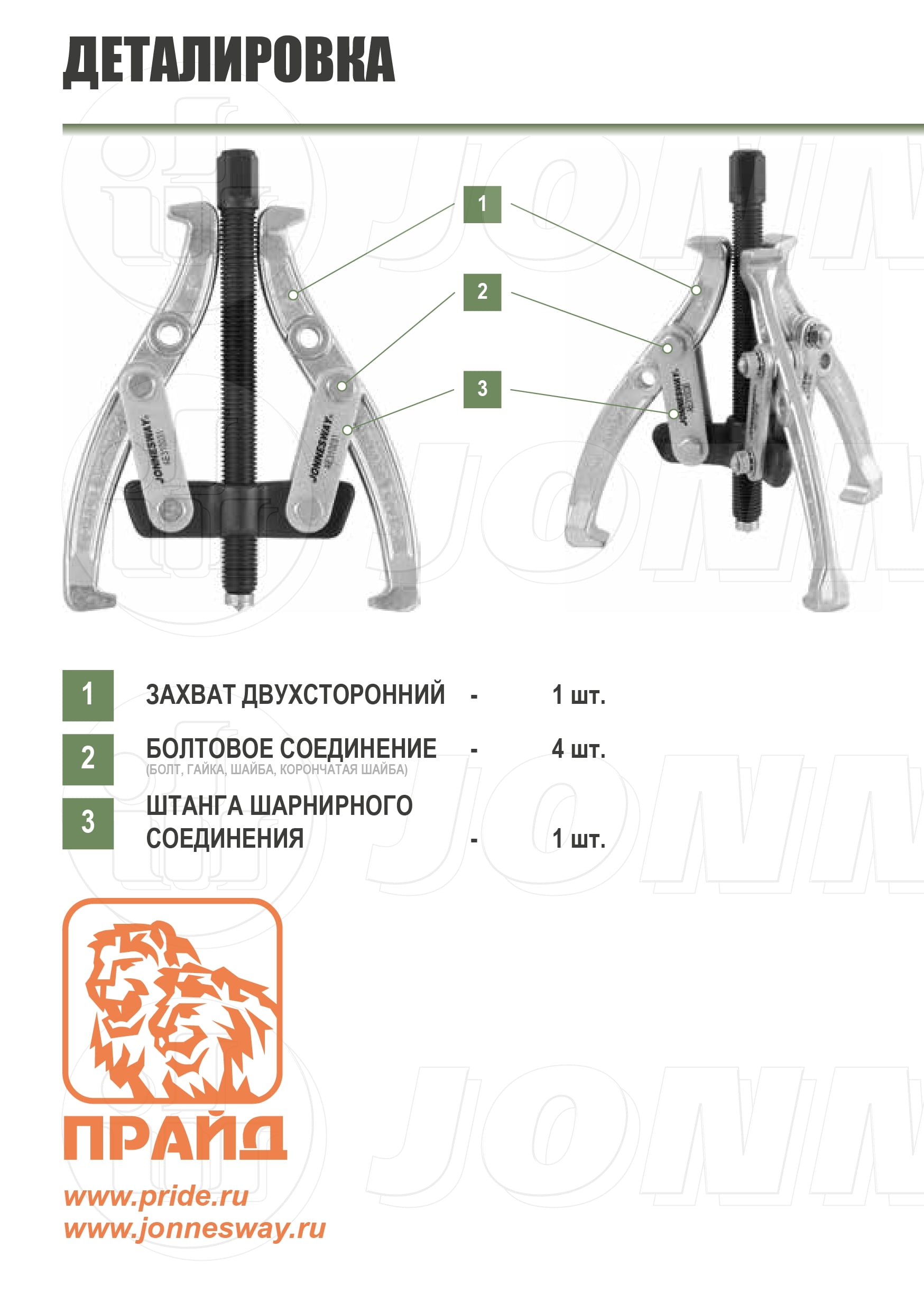 Конструкция съемника рассчитана на определенную нагрузку, обусловленную прочностными характеристиками всех его элементов. При замене правильно подбирайте запасные части в соответствии с типом и размером изделия.