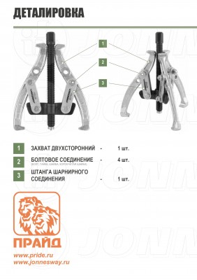 Конструкция съемника рассчитана на определенную нагрузку, обусловленную прочностными характеристиками всех его элементов. При замене правильно подбирайте запасные части в соответствии с типом и размером изделия.
