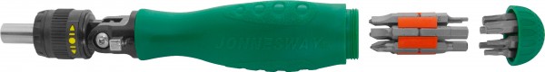 Набор предназначен для работы с резьбовыми соединениями и состоит из отверточной рукоятки с храповым механизмом и наборами бит.
