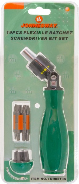 DR0219S Рукоятка отверточная с шарниром со вставками-битами в наборе, 19 предметов, код товара: 46476, артикул: DR0219S