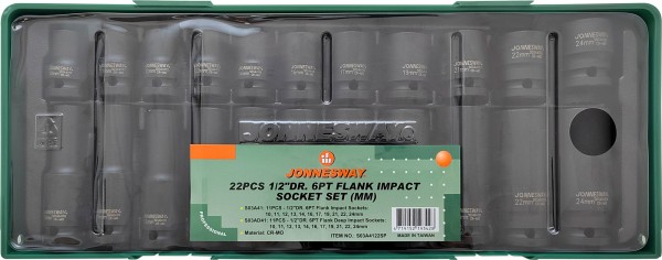 S03A4122SP Набор головок ударных 1/2"DR в ложементе, 10-24 мм, 22 предмета, код товара: 46655, артикул: S03A4122SP