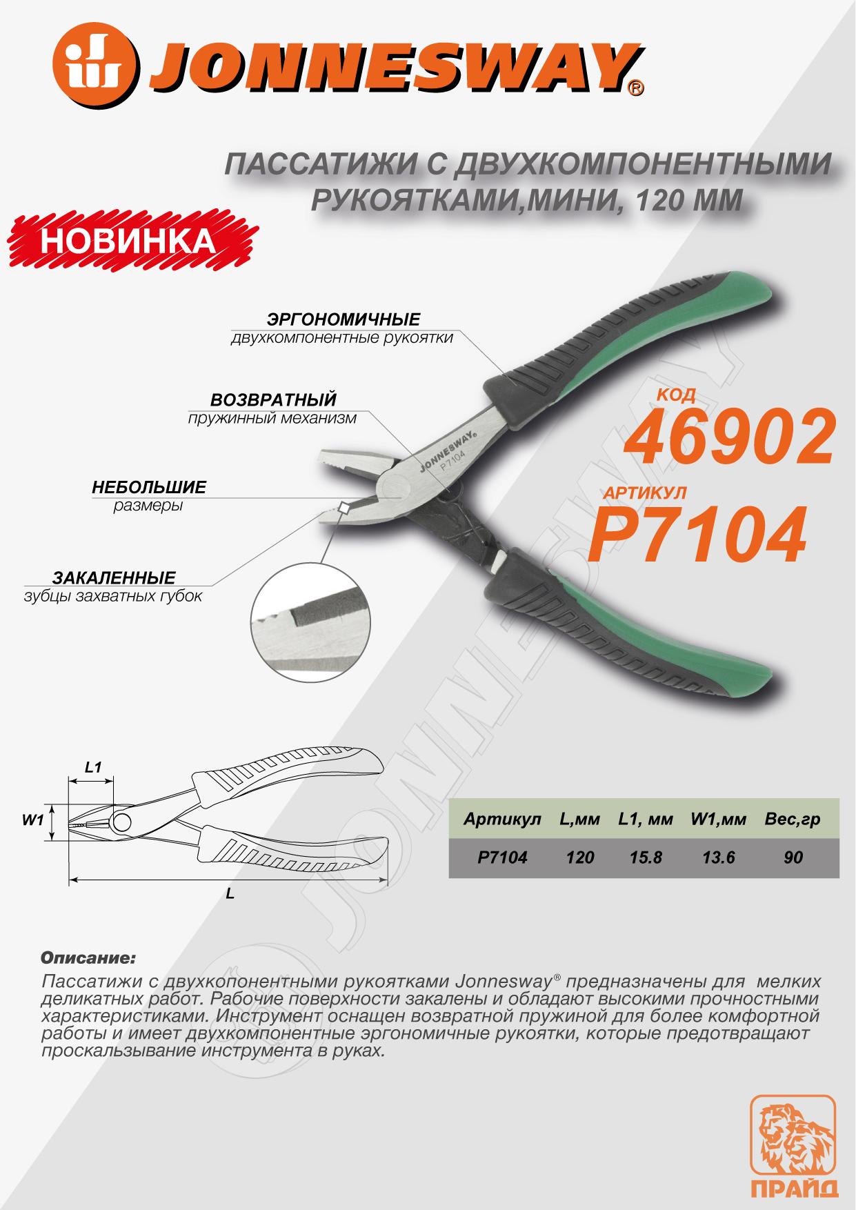 P7104 Пассатижи с двухкомпонентными рукоятками, мини, 120 мм, код товара: 46902, артикул: P7104