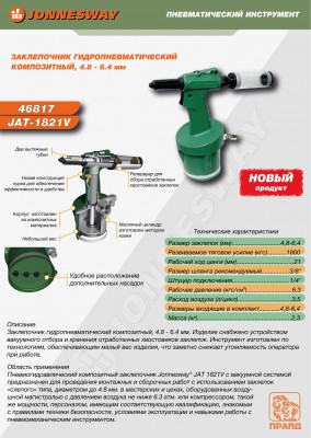 JAT-1821V Заклепочник гидропневматический композитный, 4.8 - 6.4 мм, код товара: 46817, артикул: JAT-1821V