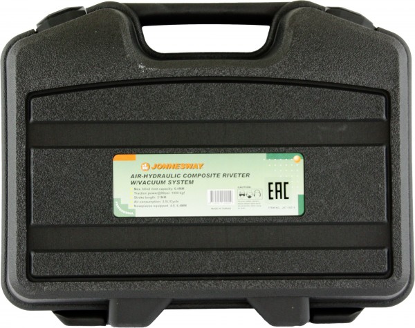 Пневмогидравлический композитный заклепочник Jonnesway® JAT 1821V с вакуумной системой предназначен для проведения монтажных и сборочных работ с использованием заклепок «слепого» типа, диаметром до 4.8 мм. в мастерских и цехах, оборудованных воздушной магистралью с давлением воздуха не ниже 6.3 атм., или компрессором, такой