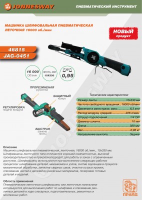 JAS-0451 Машинка шлифовальная пневматическая, ленточная, 16000 об./мин., 10х330 мм, код товара: 46815, артикул: JAS-0451