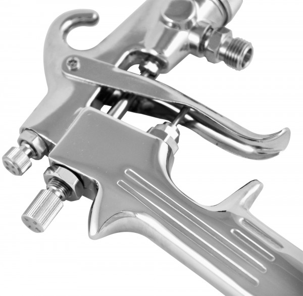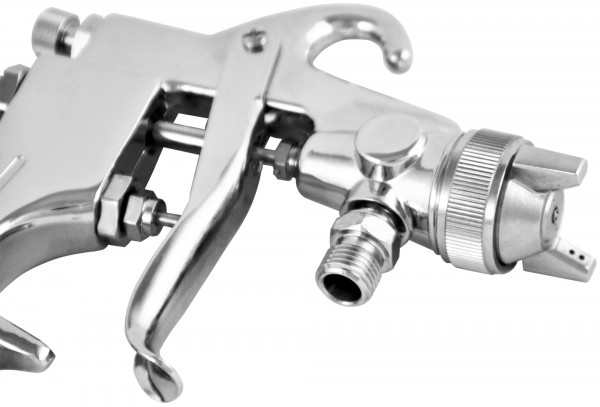Пистолет покрасочный "Краскопульт", с нижней подачей, дюза 1.8 мм. Пневматические покрасочные пистолеты марки Jonnesway предназначены для проведения внутренних и наружных малярноотделочных работ различными типами лакокрасочных материалов с возможностью подключения к воздушной магистрали с давлением воздуха не ниже 6 атм. или компрессором, такой же мощности и производительностью не ниже 400 л/мин.
