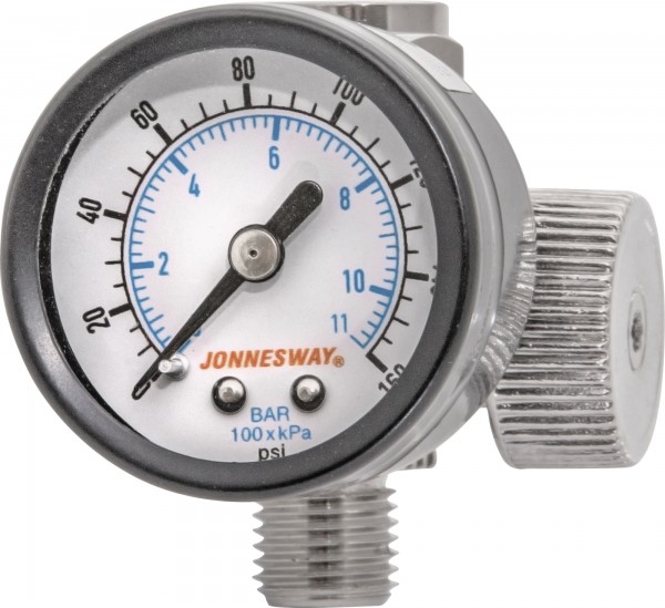 Компактное устройство, применяющееся для контроля и регулировки давления воздуха, поступающего к пневматическому инструменту в диапазоне значений давления от 0 до 10 кгс/см². Регулятор устанавливается непосредственно на рукоятку инструмента с помощью резьбового штуцера.