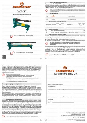 3.2.5 На гидравлический инструмент JONNESWAY® (прессы, краны, цилиндры, насосы, подкатные и бутылочные домкраты и т.п.) распространяется ограниченный срок гарантийного обслуживания, который составляет ДВЕНАДЦАТЬ месяцев со дня начала эксплуатации.