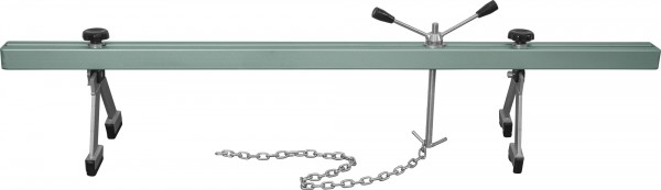 Универсальная опорная балка для двигателя и коробки передач. Опорная балка применяется для вывешивания двигателя и его фиксации при производстве работ по его обслуживанию (замена опорных подушек двигателя) и работ с трансмиссией легковых автомобилей и легких коммерческих грузовиков капотной компоновки. Балка устанавливается на выступах моторного щита.