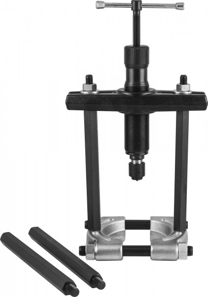 Cъемник с сепаратором и гидравлическим цилиндром в наборе, диапазон захватов 75-105 мм, глубина захвата 375 мм, max усилие 10 т. Захваты съемника изготовлены из легированной углеродистой стали, закаленной до твердости HRC 42-45, позволяют обслуживать детали в диапазоне размеров от 75 до 105 мм, расположенных на расстоянии до 375 мм от опорной поверхности. Детали тянущей части изготавливаются из углеродистой стали, обеспечивающей работоспособность изделия при его применении.