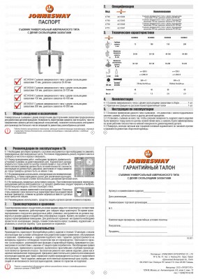 На инструменты и приспособления специального назначения торговой марки JONNESWAY® распространяется понятие «ограниченной гарантии», в связи с сокращением срока эксплуатации, связанным с повышенным износом некоторых деталей конструкции при использовании. Срок эксплуатации изделия с заявленными характеристиками определен в 12 месяцев с начала использования инструмента. Начало эксплуатации определяется по дате продажи, указанной в гарантийном талоне JONNESWAY® или фискальном документе, подтверждающем факт приобретения конкретного изделия. Срок применения инструмента с объявленными характеристиками может быть изменен индивидуально, как в сторону уменьшения, так и в сторону увеличения в зависимости от интенсивности и условий эксплуатации конкретного изделия (группы изделий).
