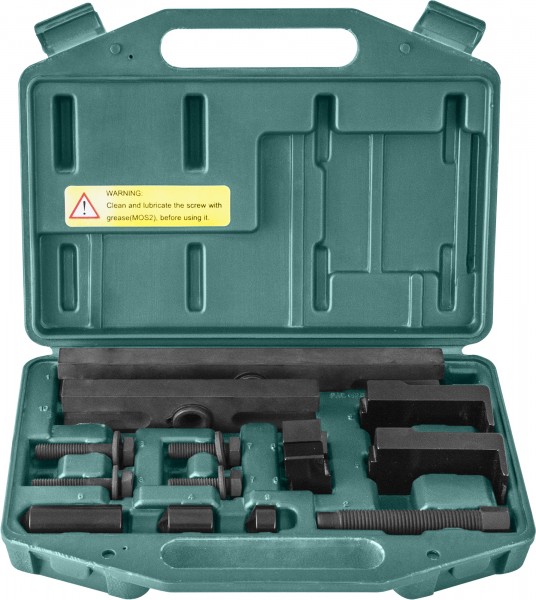 Статический съемник со сменными скользящими захватами, специально разработанный для демонтажа приводных шкивов и зубчатых колес коленчатых и распределительных валов, демонтаж которых осложнен из-за ограниченного рабочего пространства.
