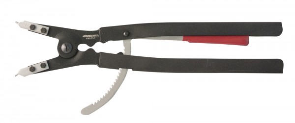 Специальные щипцы для стопорных колец больших диаметров (165-300 мм) с отверстиями 4.5-5.5 мм. серии "Р99" применяются в качестве крепежных элементов в конструкциях тяжелой автотракторной и сельскохозяйственной техники, в строительстве и продукции машиностроения. Щипцы снабжены реечным фиксатором положения губок и длинными рукоятками, обеспечивающими передачу большого усилия на детали. Особенностью конструкции является накладные, закрепленные механически рабочие части изделий.