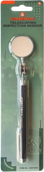 Телескопическое зеркало, диаметром 32 мм, длинной 188-535 мм. Круглое зеркало в металлической оправе, диаметром 32 мм, установленное на шарнире, закрепленном на телескопической стреле. Для удобства хранения инструмента в кармане, рукоятка снабжена зажимом.