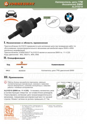 Набор предназначен для настройки и регулировки фаз ГРМ и для снятия и установки механизма натяжителя цепи на двигателях BMW V8 М60/M62/М54.