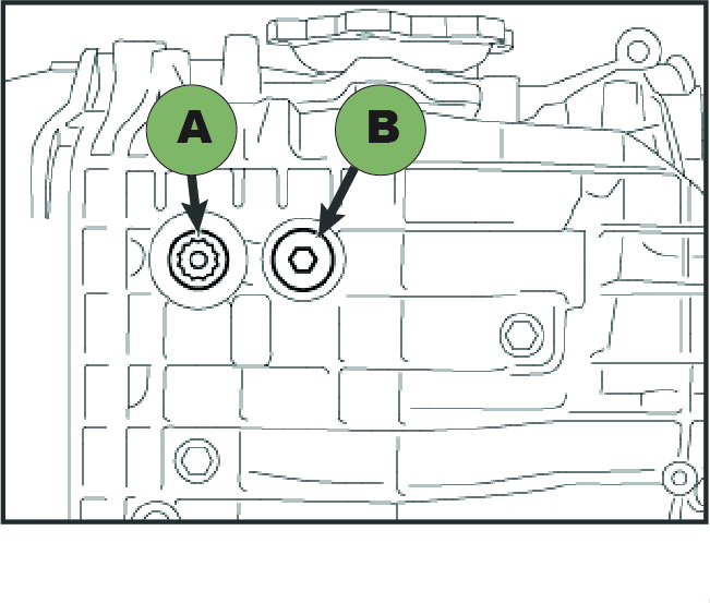 - Отвернуть резьбовую пробку сливного отверстия (А)