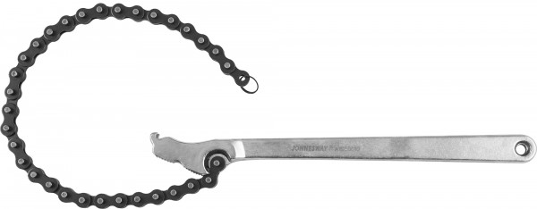 Съемник корпусных масляных фильтров, в котором в качестве захвата используется цепь длиной 475 мм, устанавливаемая в захват рукоятки, длина которой составляет 300 мм.