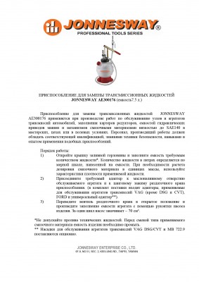 AE300176 Приспособление для замены трансмиссионных жидкостей 7,5 л., код товара: 49024, артикул: AE300176