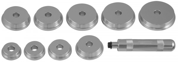 Комплект для установки подшипников и сальников, 10 предметов. Все инструменты набора изготовлены из алюминиевого сплава, что позволяет избегать повреждений монтируемых деталей при их установке.