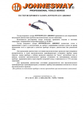 Тестер искрового зазора свечей зажигания. Tестер искрового зазора Jonnesway AR030015 полностью готов к применению и прост в эксплуатации, не требует удерживания изделия в руках во время проведения теста и пригоден в качестве прибора экспресс диагностики вне ремонтной зоны.