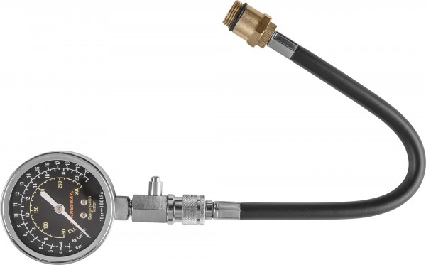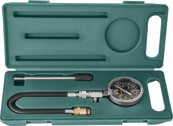Прибор для диагностики работоспособности и обнаружения неисправностей цилиндро-поршневой группы и газораспределительного механизма бензиновых двигателей внутреннего сгорания. Изделие комплектуется 64-миллиметровым манометром, имеющем шкалы градуировки до 21 кгс/см² в различных величинах: psi, Bar, кгс/см², ниппельной насадкой, длиной 150 мм, гибким шлангом, длиной 325 мм с двумя резьбовыми адаптерами для свечных отверстий М14 и М18.