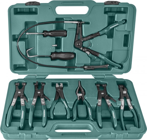 Набор щипцов для демонтажа пружинных хомутов патрубков, 9 предметов.