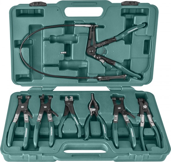 Набор щипцов для демонтажа пружинных хомутов патрубков, 7 предметов.