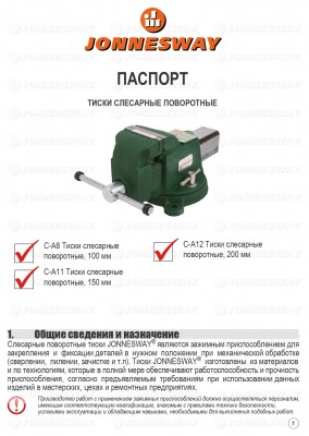 Слесарные поворотные тиски Jonnesway являются зажимным приспособлением для закрепления и фиксации деталей в нужном положении при механической обработке (сверлении, пилении, зачистке и т.п).