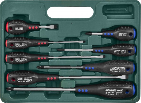 Набор Jonnesway D04PP16S состоит из стержневых отверток популярной серии JONNESWAY «FULL STAR». В наборе находятся 8 шлицевых и 8 крестовых отверток. Всего 16 отверток.