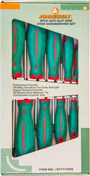 D71T109S Набор отверток стержневых TORX® ANTI-SLIP GRIP, 9 предметов, код товара: 48716, артикул: D71T109S