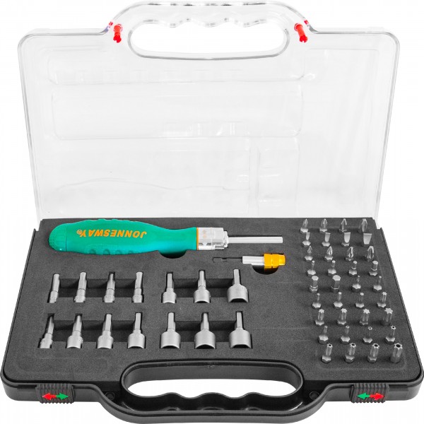 DR0152S Рукоятка отверточная трещоточная в наборе с битами и насадками, 52 предмета, код товара: 48820, артикул: DR0152S