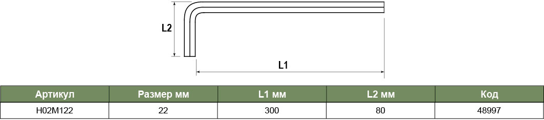 H02M122 Ключ торцевой шестигранный удлиненный, H22, код товара: 48997, артикул: H02M122