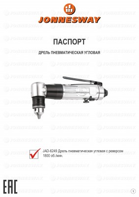 JAD-6249 Дрель пневматическая угловая с реверсом 1800 об/мин., патрон 1-10 мм, код товара: 47495, артикул: JAD-6249