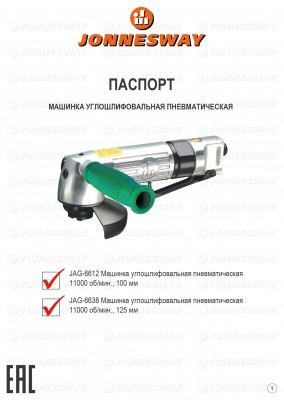 Пневматическая высокоскоростная углошлифовальная машинка Jonnesway предназначена для резки, шлифования и зачистки изделий из камня, металла и других материалов в мастерских и цехах, оборудованных воздушной магистралью с давлением воздуха не ниже 6 атм. или компрессором такой же мощности, персоналом, имеющим соответствующую квалификацию, знакомым с правилами техники безопасности, условиями эксплуатации и навыками работы с пневмомеханическим инструментом.