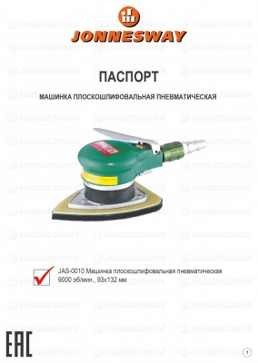 JAS-0010 Машинка шлифовальная пневматическая орбитальная "утюжок" 9000 об./мин., 93х132 мм, код товара: 48393, артикул: JAS-0010