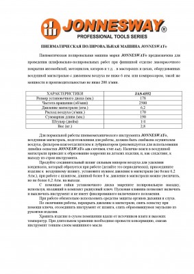 JAS-6552 Машинка шлифовальная пневматическая, вертикальная, 2500 об./мин., O180 мм, код товара: 47498, артикул: JAS-6552