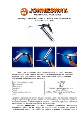 JAT-360K Нагнетатель консистентных смазок пневматический, 6 предметов, код товара: 48456, артикул: JAT-360K