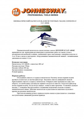 JAT-6004K Пневматический нагнетатель консистентных смазок, 6 предметов, код товара: 47823, артикул: JAT-6004K
