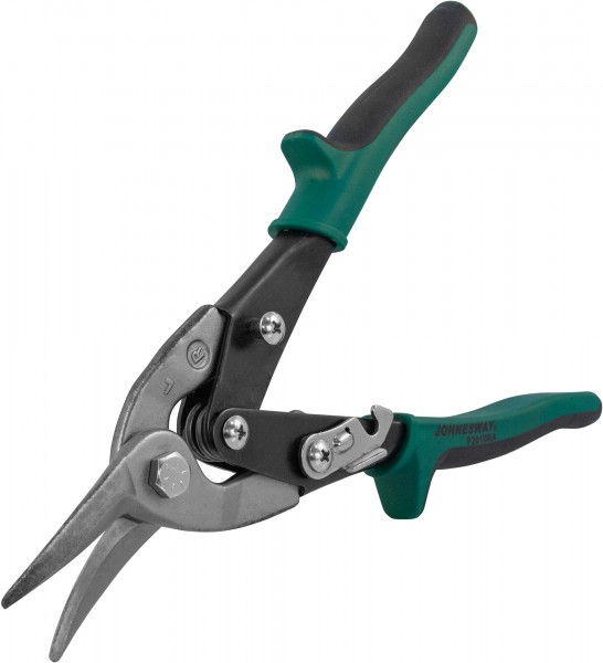 Серия десятидюймовых (250 мм) ножниц по металлу массой 395 гр., с различными направлениями реза. Ножницы направленного левого или правого реза отличаются от ножниц для прямого расположением рукояток, находящимся под углом к плоскости реза. Комплексная двухкромоч-ная рабочая часть изготовленных из хромомолибденовой стали губок инструмента обеспечивает гладкий, ровный рез материалов сопоставимых по характеристикам холоднокатаной стали толщиной до 1.2 мм или нержавеющей стали толщиной до 0.7 мм. Твердость рабочей части зубчатой кромки - 55-60 HRC, режущей кромки - 60-62 HRC обеспечивает высокую износостойкость и легкость работы, а скрытая в рукоятках возвратная пружина облегчает работу оператора. Рукоятки снабжаются цветными, травмобезопасными ПВХ чехлами: красный - левый рез, желтый – прямой, зеленый – правый рез. Контактная поверхность чехлов покрыта накладками из термопластической резины. Изделия по основным условиям соответствуют ГОСТ 7210-75.