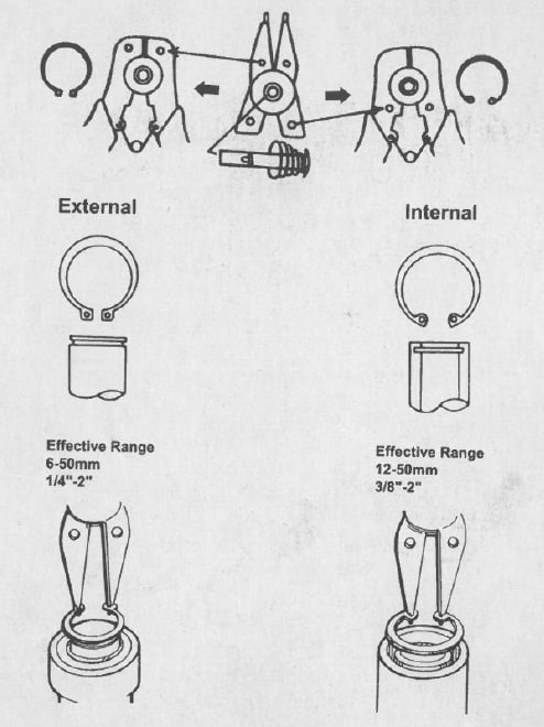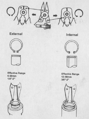 Щипцы для демонтажа стопорных колец. Группа специального шарнирно-губцевого инструмента, применяемого для производства работ, связанных с демонтажем и установкой стопорных колец. По области применения данные инструменты разделяются на два типа: щипцы для внутренних стопорных колец и для внешних.