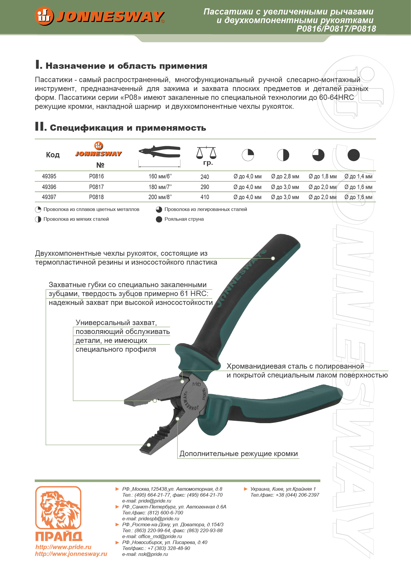 Пассатижи серии "Р08" изготовлены из хромованадиевой стали. Индукционно закаленные до высокой твердости рабочие поверхности и хромированный соединительный элемент инструмента обеспечивают длительный срок его эксплуатации за счет повышенной износостойкости. Изделия снабжены однокомпонентными эргономичными рукоятками, имеют матовое хромоникелевое покрытие, соответствуют техническим условиям ГОСТ 17438-72.