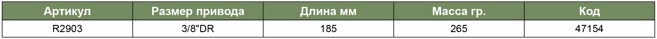 R2903 Рукоятка трещоточная 3/8"DR, 36 зубцов, 185 мм, код товара: 47154, артикул: R2903