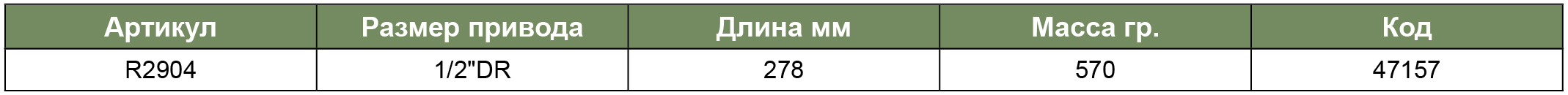 R2904 Рукоятка трещоточная 1/2"DR, 36 зубцов, 280 мм, код товара: 47157, артикул: R2904