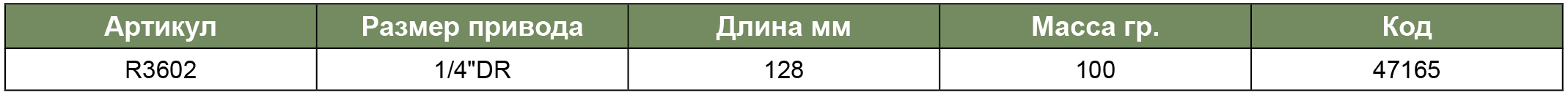 R3602 Рукоятка трещоточная 1/4"DR, 48 зубцов, 130 мм, код товара: 47165, артикул: R3602