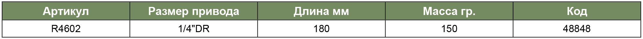 R4602 Рукоятка трещоточная удлиненная 1/4"DR, 48 зубцов, 180 мм, код товара: 48848, артикул: R4602